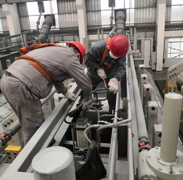 近日,電解一車間職工普遍反映在生產(chǎn)過程中電解槽的“脾氣”越來越壞,當(dāng)發(fā)生效應(yīng)時,打殼氣缸打殼無力,效應(yīng)時間延長,原鋁含鐵量增加,不僅影響出鋁質(zhì)量,而且增加錘頭更換頻率,嚴(yán)重干擾電解槽平穩(wěn)運行。 對此問題電解一車間高度重視,組織技術(shù)小組進(jìn)行研究解決,經(jīng)過反復(fù)觀察打殼氣缸工作狀況,對比數(shù)據(jù)最終確定是由于打殼氣缸回風(fēng)管路排風(fēng)不暢,氣缸活塞連桿不能及時回彈,造成打殼錘頭回位慢,影響到了氣缸正常工作。原因找到后,技術(shù)小組人員決定動手改造氣控柜內(nèi)氣缸回風(fēng)管路。經(jīng)過反復(fù)試驗,最終確定了用最少的配件再增加一路氣缸回風(fēng)管路的方案,通過把氣缸回風(fēng)管路分成兩路,加快氣缸排風(fēng)。改造后,氣缸打殼無力,錘頭回位慢的問題迎刃而解,氣缸開始正常工作,平日里那個脾氣溫和的電解槽又回來了。 經(jīng)過一段時間的試運行,效應(yīng)時長縮短,電耗降低,槽溫平穩(wěn),錘頭更換頻率明顯下降。在今后的生產(chǎn)中,電解一車間還將積極發(fā)揮技術(shù)小組的優(yōu)勢,及時發(fā)現(xiàn)問題,解決問題。 |