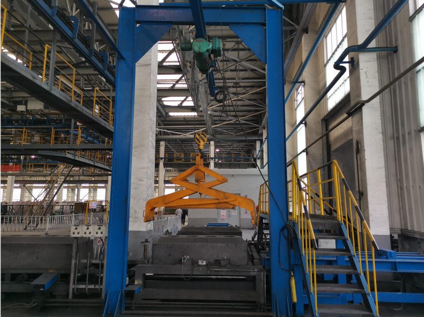陽極分公司組裝車間在生產(chǎn)過程中,經(jīng)常會遇到熟陽極炭塊上線進入澆鑄區(qū)域時,因鋼爪和炭塊填碗偏差而出現(xiàn)組對失敗的現(xiàn)象,一旦出現(xiàn)組隊失敗,就只能利用叉車倒運外排后通過運輸車輛重新返回焙燒車間上線。然而受炭塊組對作業(yè)區(qū)空間限制,車輛倒運操作難度大、作業(yè)安全風險較高,同時,倒運外排還造成車輛運輸成本增加,生產(chǎn)效率降低等問題。 為了徹底解決這一生產(chǎn)難題,在分公司領導積極協(xié)調(diào)下,相關部門同組裝車間生產(chǎn)管理技術人員積極借鑒同行業(yè)先進生產(chǎn)經(jīng)驗,多次在現(xiàn)場討論研究,實踐分析,最終制定出行之有效的技改方案:通過在炭塊外排區(qū)加裝立式龍門架,安裝炭塊起吊設備,并調(diào)整PLC自動控制系統(tǒng),當炭塊組對失敗后,便可利用起吊設備就地進行重新組對上線,既省去了叉車倒運環(huán)節(jié),避免了外排運輸安全問題,又簡化了工藝流程,降低了車輛倒運外排費用,徹底解決了長期影響生產(chǎn)工藝的“老大難”。 炭塊外排上線工序改造完成后,通過一個多月的運行檢驗,澆鑄區(qū)流水線運行狀態(tài)良好,既節(jié)約了生產(chǎn)運輸成本,降低了作業(yè)風險和人工勞動強度的同時,又使生產(chǎn)效率得到顯著提高,為陽極分公司組裝車間高效率完成產(chǎn)量任務奠定了堅實基礎。 |