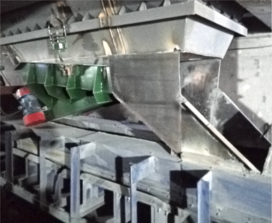 為解決這一難題,組裝車間多次溝通設(shè)備廠家,查閱相關(guān)資料,學(xué)習(xí)同行業(yè)先進(jìn)生產(chǎn)經(jīng)驗,經(jīng)分公司領(lǐng)導(dǎo)、相關(guān)部門、車間技術(shù)骨干專題研究,結(jié)合現(xiàn)場實際,制定出行之有效的改造方案:通過增大原外加料口尺寸,將殘陽極表面預(yù)破碎的大塊電解質(zhì)直接通過外加料口加入破碎系統(tǒng),省去了裝卸和自動清理工序,大大減輕了設(shè)備運行負(fù)擔(dān),同時,在外加料口下方加裝振動給料機,加大進(jìn)給量,對破碎后的電解質(zhì)及時處理,避免堵料。