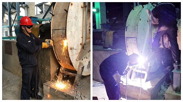陽(yáng)極分公司成型車間熱媒瀝青作為車間的“后勤保障”系統(tǒng),承擔(dān)著車間主工藝物料用熱需求及瀝青熔化保溫工作。近日,熱媒工在巡檢過(guò)程中發(fā)現(xiàn)1#余熱風(fēng)機(jī)存在異響,震動(dòng)聲偏大,并伴隨有略微滲油現(xiàn)象,存在著設(shè)備安全隱患。 為徹底消除隱患,保障正常生產(chǎn),7月27日下午,車間利用2#余熱鍋爐年檢間歇,對(duì)1#余熱風(fēng)機(jī)進(jìn)行拆機(jī)搶修。為了啃下這塊“硬骨頭”,車間檢修人員、技術(shù)骨干多方商議,決定從風(fēng)機(jī)側(cè)面割開一個(gè)檢修孔,對(duì)風(fēng)機(jī)前段百葉閥進(jìn)行拆卸,再通過(guò)對(duì)葉輪進(jìn)行手動(dòng)盤車查找異響原因。經(jīng)過(guò)多次嘗試、細(xì)致查找,最終發(fā)現(xiàn)是由于風(fēng)機(jī)軸頭平鍵磨損,葉輪失去動(dòng)平衡所致。異響原因確定,檢修人員立即對(duì)相關(guān)部位進(jìn)行拆卸,很快取下平鍵,同時(shí)為了保證裝配精度,在原平鍵的基礎(chǔ)上進(jìn)行精準(zhǔn)補(bǔ)焊,仔細(xì)打磨后重新安裝。經(jīng)過(guò)8個(gè)多小時(shí)的不間斷搶修,在大夜班生產(chǎn)前順利完成了搶修任務(wù),風(fēng)機(jī)的轟鳴聲再次響起,異響、震動(dòng)聲消除,搶修工作取得圓滿成功。隨后,熱煤工對(duì)拆卸部位鋪設(shè)保溫,并對(duì)搶修現(xiàn)場(chǎng)進(jìn)行了徹底清理。 此次搶修作業(yè),充分展現(xiàn)出車間職工迎難而上、追求卓越的精神風(fēng)貌,同時(shí)進(jìn)一步為分公司積累了豐富的設(shè)備檢修工作經(jīng)驗(yàn),為分公司順利完成生產(chǎn)目標(biāo)任務(wù)夯實(shí)了基礎(chǔ)。 |