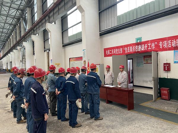 近期,鋁鎂合金分公司電解二車間黨支部開展“黨員蹲點包槽提升工作”專項活動,進一步提升電解槽指標,保證職工高溫作業(yè)質(zhì)量,8月9日,活動啟動會在六工區(qū)舉行,支部全體黨員參加。 啟動會上,支部書記靳祥印作動員講話,支部副書記魏崇東對專項活動實施方案作出具體講解,車間副主任陳繼普對責任槽進行了劃分。 分公司黨委副書記李意川出席啟動會,對活動的開展給予肯定和支持,勉勵大家要不斷激發(fā)黨支部戰(zhàn)斗力和黨員先鋒模范作用,力爭打造一支業(yè)務(wù)熟練、作風優(yōu)良、工作規(guī)范的黨員示范隊伍。同時,要求廣大黨員職工要加強對責任槽的日常檢查、維護,在封極換極、收邊整形等工作中抓好細節(jié),在現(xiàn)有基礎(chǔ)上進一步深挖潛力,提升電解槽指標,降低能耗。 現(xiàn)場還簽訂了“黨員蹲點承包槽”承諾書。大家紛紛表示,將以更加飽滿的熱情、昂揚的斗志、扎實的作風,用實際成績?yōu)檐囬g保質(zhì)保量完成全年生產(chǎn)任務(wù)保駕護航。啟動會在全體黨員的鏗鏘誓言中圓滿結(jié)束。 |
