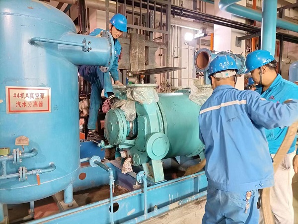 錦陽(yáng)電廠#2機(jī)組A級(jí)檢修正在緊張進(jìn)行中,巡檢發(fā)現(xiàn)#4機(jī)A真空泵運(yùn)行異常,檢修部高度重視、緊急抽調(diào)汽機(jī)檢修班部分人員投入到設(shè)備的搶修中。真空泵是電廠重要輔機(jī)之一,其作用是抽出凝汽器中的未凝結(jié)氣體,使汽輪機(jī)正常運(yùn)行中維持足夠真空度,形成負(fù)壓保證汽輪機(jī)正常進(jìn)汽做功。真空泵故障將會(huì)影響系統(tǒng)真空度、機(jī)組出力,嚴(yán)重時(shí)會(huì)造成機(jī)組停機(jī)。 本次設(shè)備搶修作業(yè)涉及到高空、吊裝等特種作業(yè),時(shí)間緊、任務(wù)重,汽機(jī)班全力以赴,分秒必爭(zhēng)。真空泵解體后,發(fā)現(xiàn)驅(qū)動(dòng)端軸承磨損嚴(yán)重,軸承與軸抱死,初步判定上述現(xiàn)象是造成本次設(shè)備故障的直接原因。檢修人員各司其職、按照分工:一組取下磨損軸承,測(cè)量大軸原始數(shù)據(jù),打磨修復(fù)磨損區(qū)域,分析造成本次設(shè)備故障原因;二組打磨、清洗拆卸下來(lái)其余設(shè)備零部件,確認(rèn)需回裝備件;三組準(zhǔn)備倒鏈、撬杠、拉馬等專用工具開(kāi)始回裝,各環(huán)節(jié)嚴(yán)格按照檢修工藝有序開(kāi)展。經(jīng)過(guò)十多個(gè)小時(shí)的持續(xù)搶修,在保證上下張口及左右偏差5s以內(nèi)后,設(shè)備進(jìn)行試轉(zhuǎn),振動(dòng)、聲音、溫度、電流等各項(xiàng)參數(shù)均優(yōu)良,搶修工作取得圓滿成功。 此次搶修,及時(shí)消除了真空泵存在的安全隱患,提高了設(shè)備安全運(yùn)行周期,為機(jī)組安全穩(wěn)定運(yùn)行打下了堅(jiān)實(shí)的基礎(chǔ)。 |