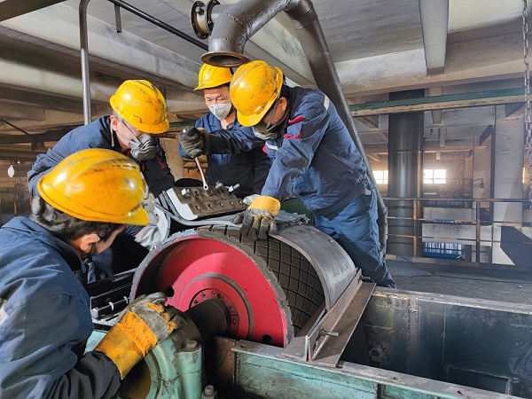 陽(yáng)極分公司成型車間斗式提升機(jī)是陽(yáng)極生產(chǎn)原料運(yùn)輸工序的重要設(shè)備,在安全生產(chǎn)過(guò)程中發(fā)揮著極其關(guān)鍵作用。因長(zhǎng)時(shí)間滿負(fù)荷運(yùn)行,皮帶部分位置已經(jīng)出現(xiàn)嚴(yán)重磨損現(xiàn)象,成型車間決定對(duì)其進(jìn)行更換、維修。 在本輪停運(yùn)檢修期間,成型車間結(jié)合生產(chǎn)實(shí)際,制定詳實(shí)的工作方案和應(yīng)急預(yù)案。由于維修作業(yè)空間小、更換時(shí)間緊,車間決定由維修班和生產(chǎn)二班數(shù)十人互相配合共同對(duì)斗式提升機(jī)皮帶進(jìn)行更換。更換現(xiàn)場(chǎng),作業(yè)人員嚴(yán)格遵守安全操作規(guī)程要求及預(yù)定方案,經(jīng)過(guò)三天的共同努力完成了100多米舊皮帶和近200個(gè)料斗的更換安裝。同時(shí)充分利用停運(yùn)時(shí)機(jī),完成了兩對(duì)滾軸更換工作,保證了后期生產(chǎn)線的平穩(wěn)運(yùn)行。 此次作業(yè),為今后更換斗式提升皮帶積累了經(jīng)驗(yàn),同時(shí)也有效保障了分公司日后設(shè)備運(yùn)行的穩(wěn)定性、生產(chǎn)的連續(xù)性。 |