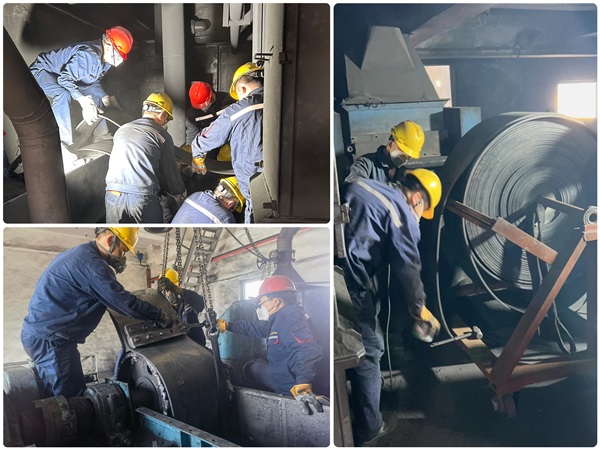 | 陽極分公司成型車間返回料#1斗式提升機從階段性試運行到持續(xù)生產(chǎn)已有9年之久,連接部位積料和銹蝕問題逐漸顯現(xiàn),主動輥滾筒及皮帶磨損程度也已達到更換標準。近期,結合工作實際和設備檢修計劃,車間決定對#1斗式提升機進行全面維修。 此次返回料斗式提升機維修強度高、難度大,分公司相關職能部門及車間高度重視,成立檢維修工作小組,商討制定維修方案和應急預案,隨著備品備件的逐步到廠,維修工作如期展開。維修過程中,檢修班組和生產(chǎn)班組協(xié)同配合,從拆卸固定螺栓、清理積累物料到對拆下部件進行標記分類擺放、備品備件有序更換安裝,維修人員精心操作、規(guī)范作業(yè),確保每道工序有條不紊、高效完成。特別是在手動盤車更換80米皮帶過程中,檢修人員結合現(xiàn)場實際自主設計制作適用工具,有效推進了更換進度。經(jīng)過為期5天的不懈努力,于4月12日按計劃完成維修更換工作,設備運行調試正常后將投入生產(chǎn)。 此次檢修工作,不僅徹底消缺了該設備存在的問題,也有效保證了后期車間生產(chǎn)工作的持續(xù)穩(wěn)定。今后工作中,成型車間將持續(xù)做好設備隱患排查治理,確保設備安全高效穩(wěn)定運行。 |