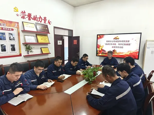 11月20日,陽極分公司成型車間黨支部組織開展“品讀紅色書籍 傳承紅色基因”主題黨日活動(dòng)。 活動(dòng)現(xiàn)場(chǎng),大家共同閱讀了《把一切獻(xiàn)給黨》《百年信仰》《紅色延安故事》《苦難輝煌》等紅色經(jīng)典書籍,感知那一段段波瀾壯闊的歷史。隨后,在交流發(fā)言環(huán)節(jié),大家分享讀書感受、暢談學(xué)習(xí)收獲。支部委員張磊現(xiàn)場(chǎng)分享了《把一切獻(xiàn)給黨》的閱讀感悟,“這本書的作者吳運(yùn)鐸同志用自己的一生詮釋了怎樣‘把一切獻(xiàn)給黨’,是我們每個(gè)黨員學(xué)習(xí)的榜樣,我要勇于擔(dān)責(zé)、認(rèn)真盡責(zé),做好模范表率,用實(shí)際行動(dòng)為公司健康可持續(xù)發(fā)展貢獻(xiàn)力量。”他說道。 現(xiàn)場(chǎng)黨員一致表示,在今后工作中,始終堅(jiān)定理想信念,傳承和發(fā)揚(yáng)黨的優(yōu)良傳統(tǒng)和工作作風(fēng),踔厲奮發(fā)、勇毅前行,以飽滿的工作熱情和積極的工作態(tài)度干好本職工作。分享結(jié)束后,黨支部書記帶領(lǐng)黨員重溫入黨誓詞,大家緊握右拳、面向黨旗、莊嚴(yán)宣誓。 此次活動(dòng),不僅為廣大黨員提供了學(xué)習(xí)和交流的平臺(tái),筑牢了“信仰之基”,補(bǔ)足了“精神之鈣”,也激發(fā)了黨員愛黨愛國(guó)情懷和創(chuàng)新創(chuàng)造活力。下一步,成型車間黨支部將努力把“主題黨日”打造成為提升隊(duì)伍凝聚力、落實(shí)重點(diǎn)任務(wù)的有效載體,將成果成效轉(zhuǎn)化為高質(zhì)量干好安全生產(chǎn)工作的強(qiáng)大動(dòng)力。 |
